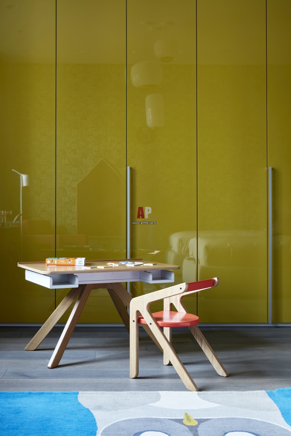 Интерьер детской в современной квартире. Желтый глянцевый шкаф, Porro.