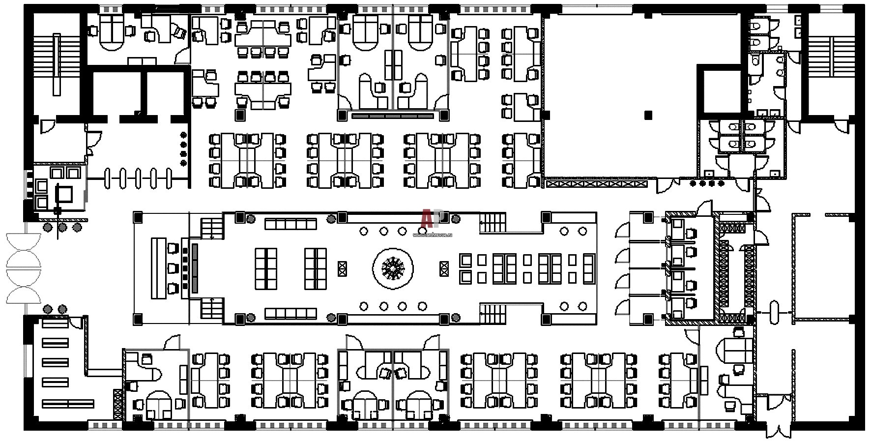 Планировка клиентского этажа офиса страховой компании. Общая площадь - 5000 кв. м.