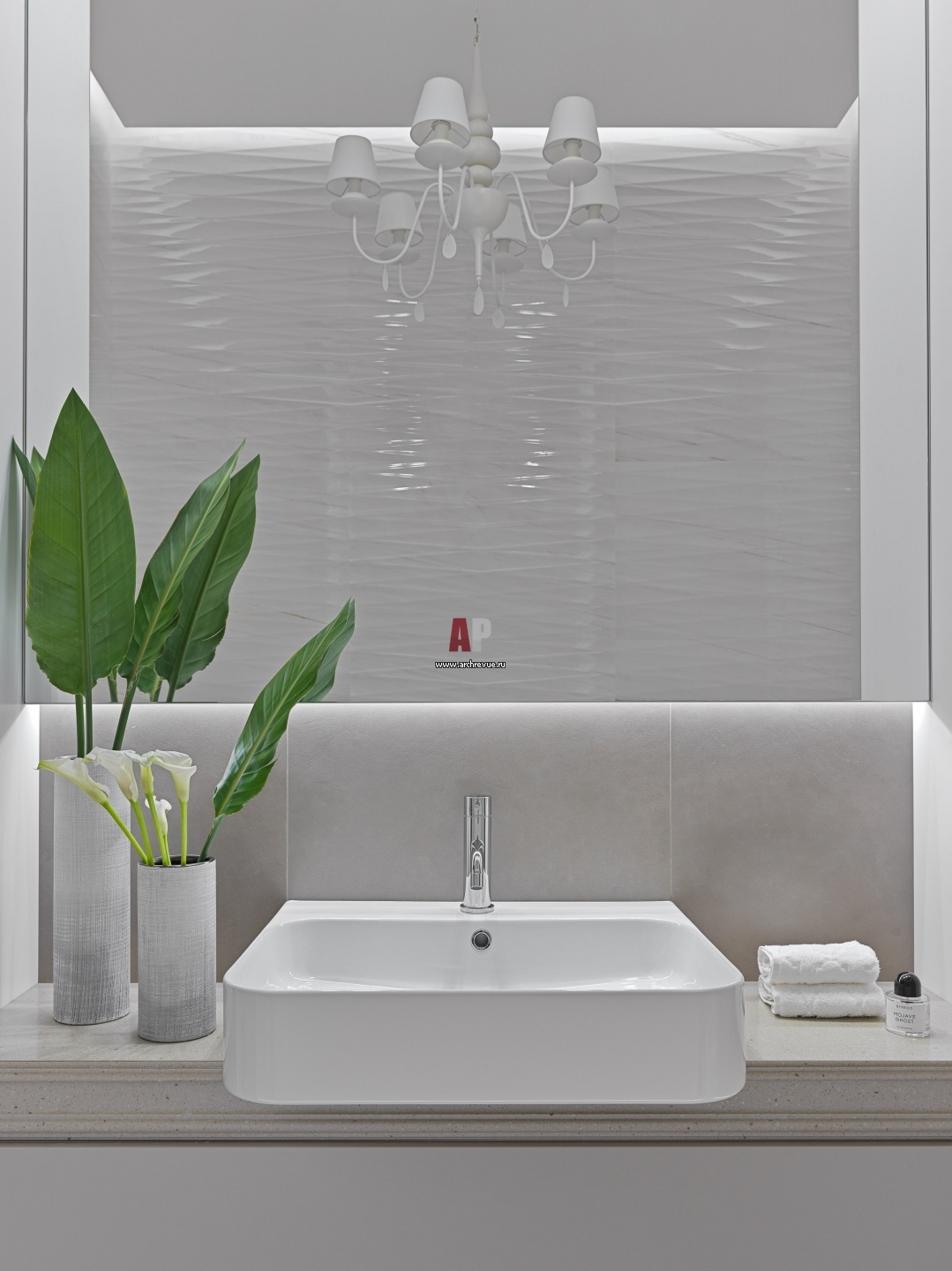 Хозяйская ванная комната. Зеркальный шкаф над раковиной расширяет пространство. Керамогранит, Sant Agostino. Сантехника, Cristina Rubinetterie.