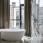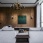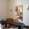 Интерьер таунхауса с нейтральной палитрой и современным искусством. Кабинет.