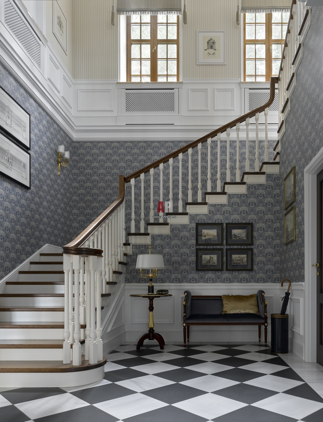 Фото интерьера лестничного холла резиденции в классическом стиле