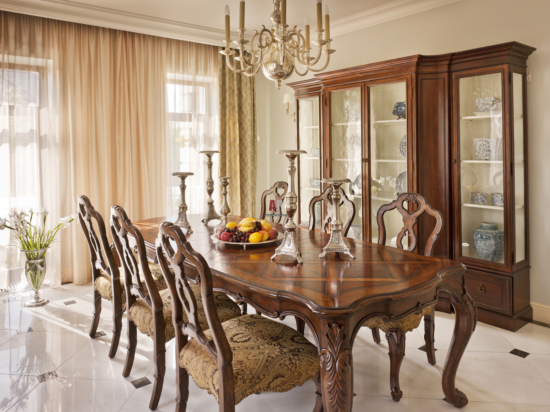 Дизайн-проект интерьера столовой в традиционном американском стиле. Полы из полированного керамогранита с факткрой мрамора, поставщик BARS RED.