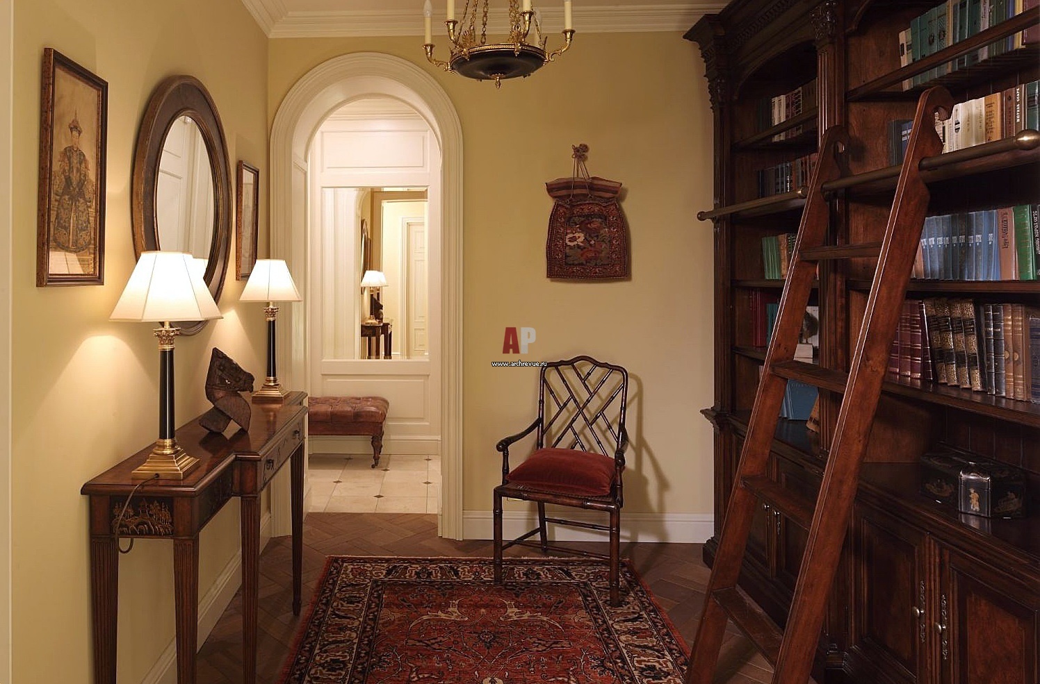 Фото интерьера библиотеки квартиры в английском стиле