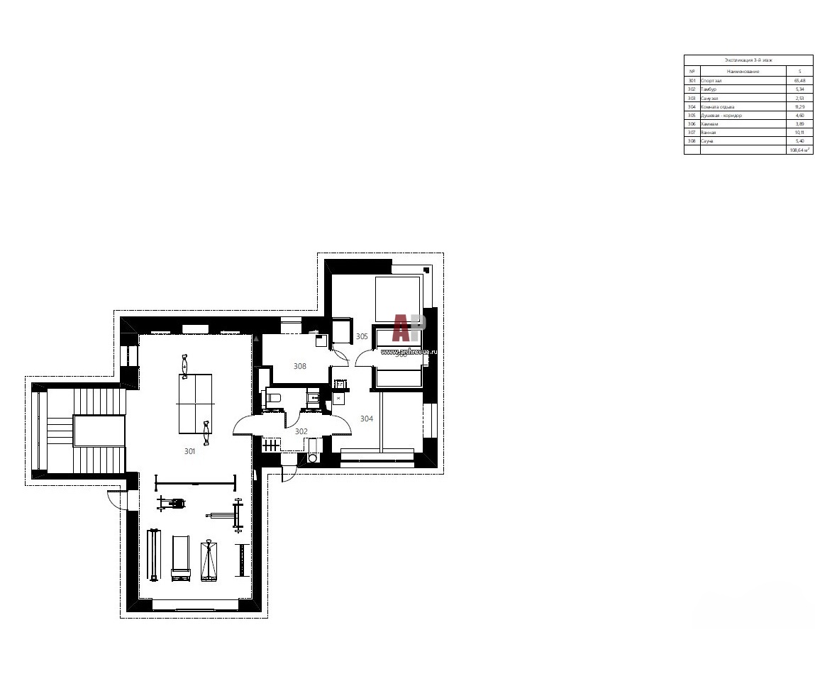 Планировка 3 этажа 3-х этажного реконструированного дома в Подмосковье.