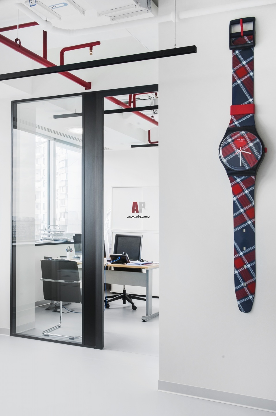 Яркие настенные часы Swatch на стенах помещений придают пространству узнаваемый вид.