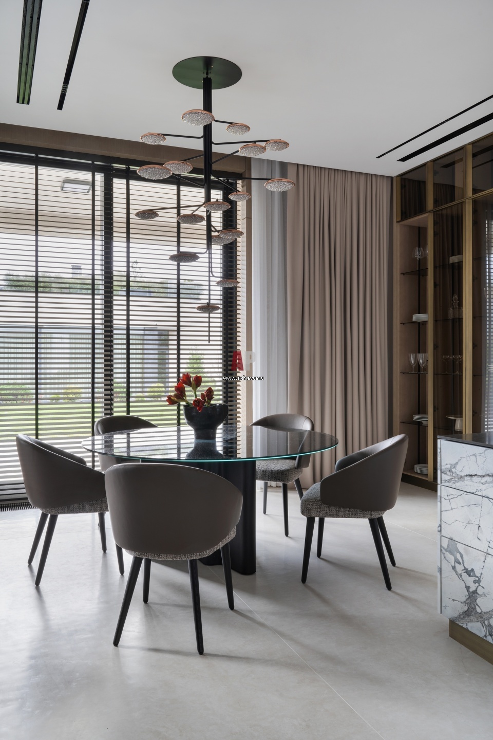 Обеденная зона. Стол и стулья, Minotti. Светильник над столом, Manooi.