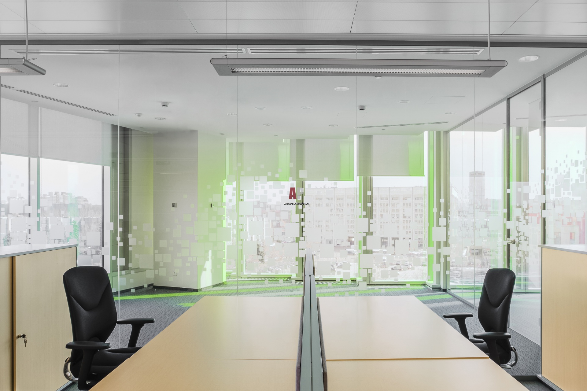 Интерьер рабочей зоны в современном офисе.