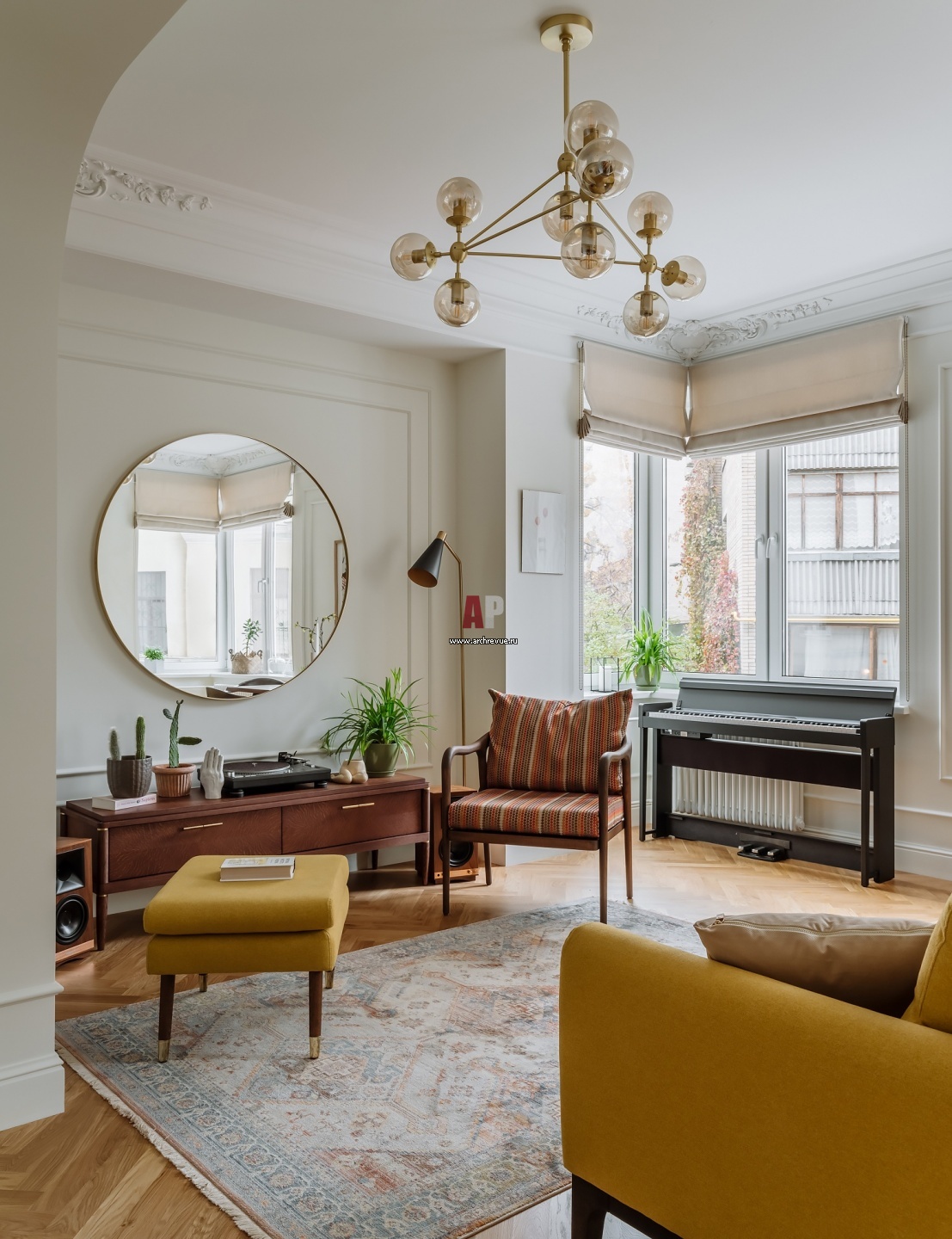 Квартира с атмосферой старой Москвы для интеллигентной семьи. В гостиной нужно было найти место для пианино в также создать места для хранения гитары и виолончели.