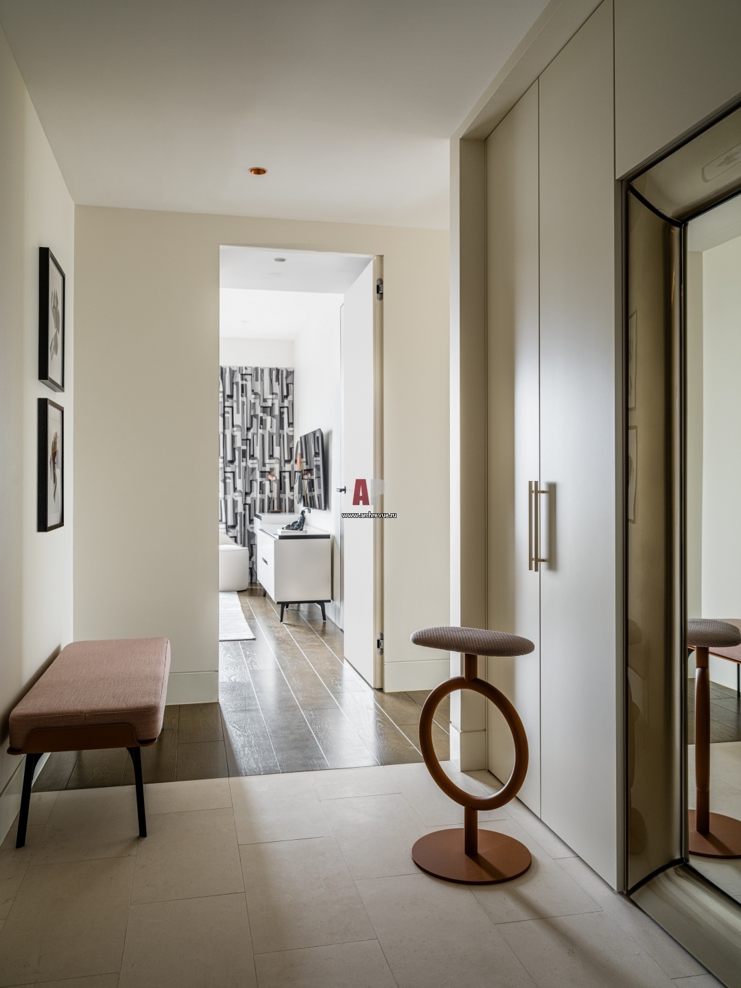 Сдержанная выразительность. Интерьер квартиры для молодого бизнесмена. Прихожая. Банкетка, Bolzan Letti. Полубарный стул, Sancal.