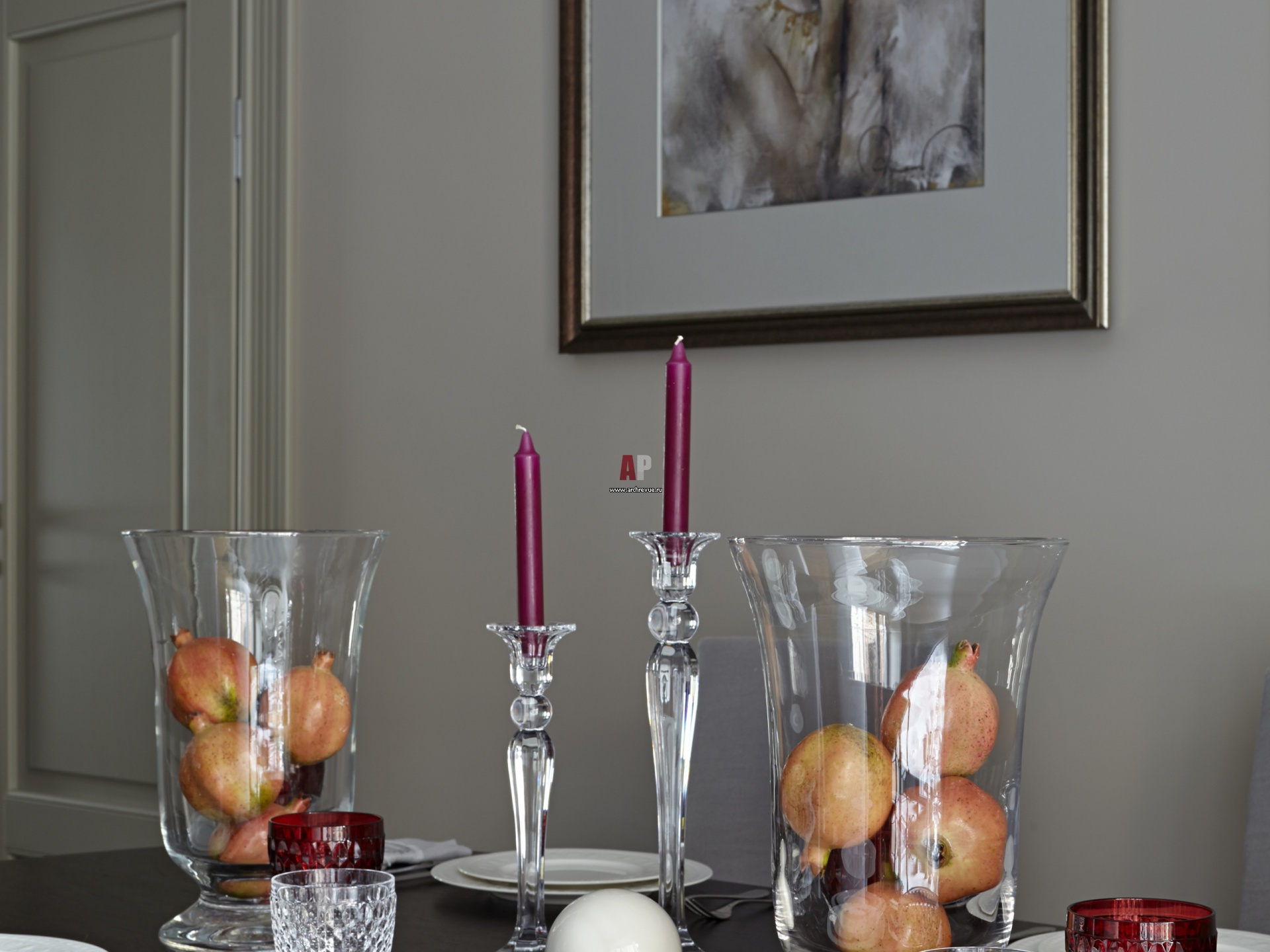 Фото праздничной сервировки обеденного стола в интерьере квартиры в стиле фьюжн.