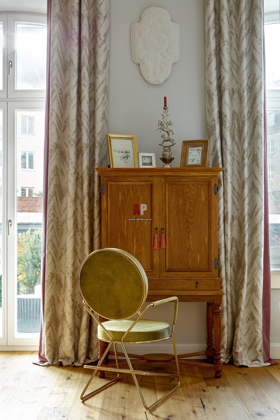 Рабочая зона в гостиной. Стул, Moroso. Комод, винтаж.