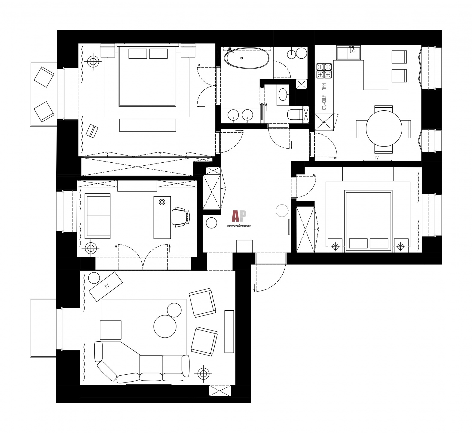 Перепланировка квартиры в старом жилом фонде. Общая площадь – 116 кв. м