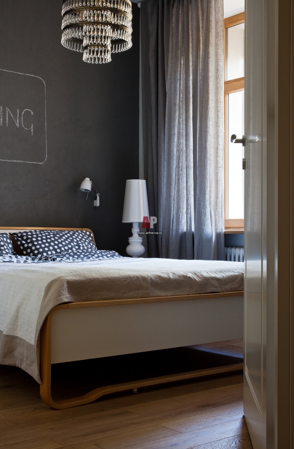 Интерьер родительской спальни. Кровать – из старой коллекции «Икеа». Шторы, лен. Покрывало и постельное белье, Zara Home.