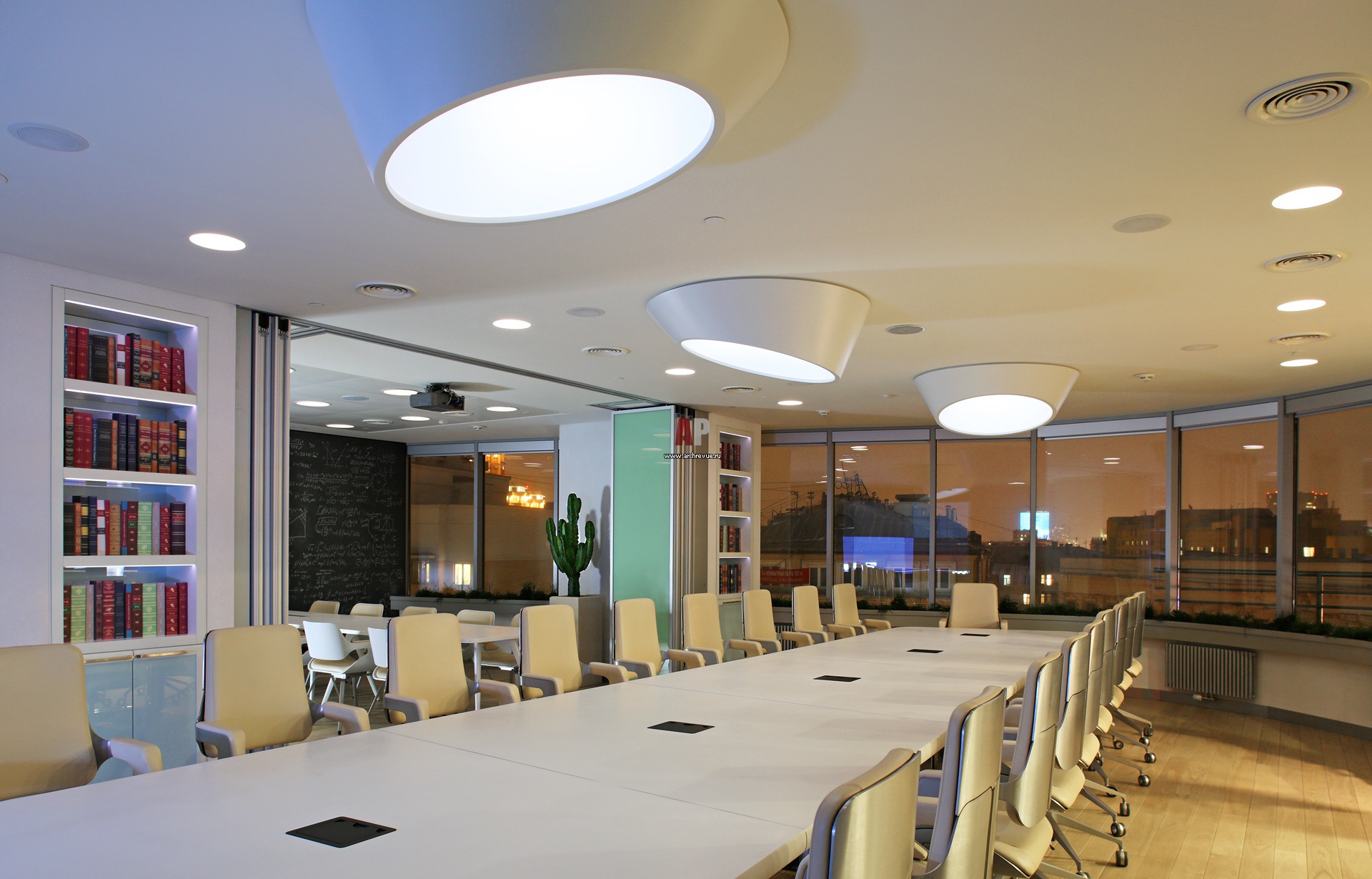 Благодаря раздвижным дверям две соседние переговорные могут быть объединены в одно большое рабочее помещение.
