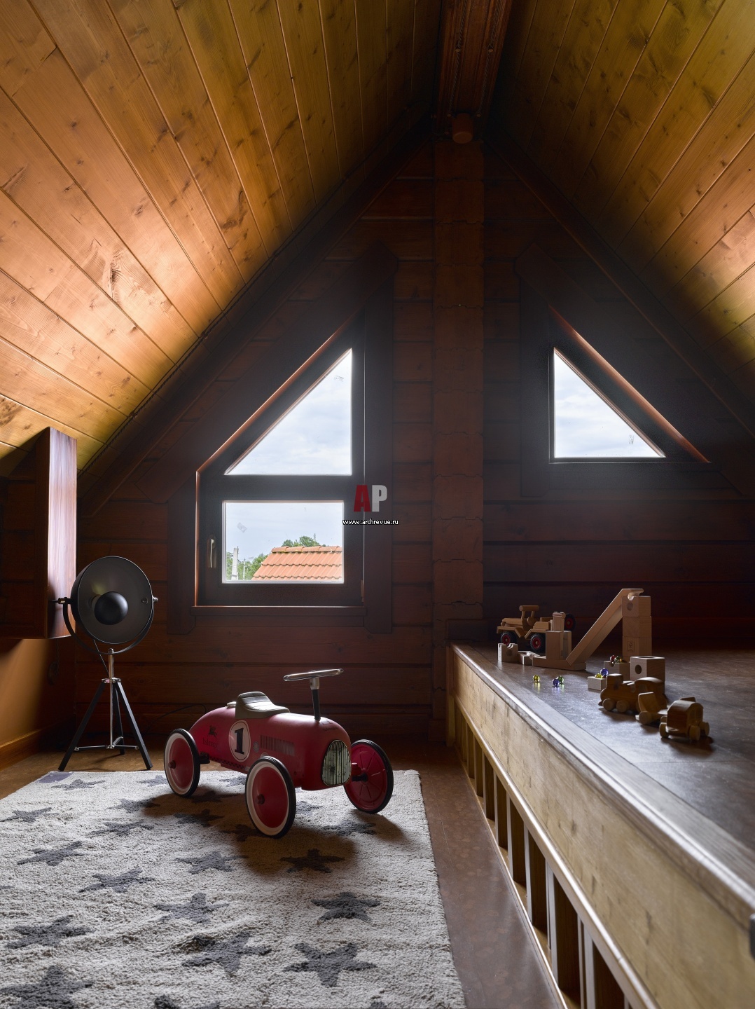 Фото интерьера детской деревянного дома в стиле фьюжн