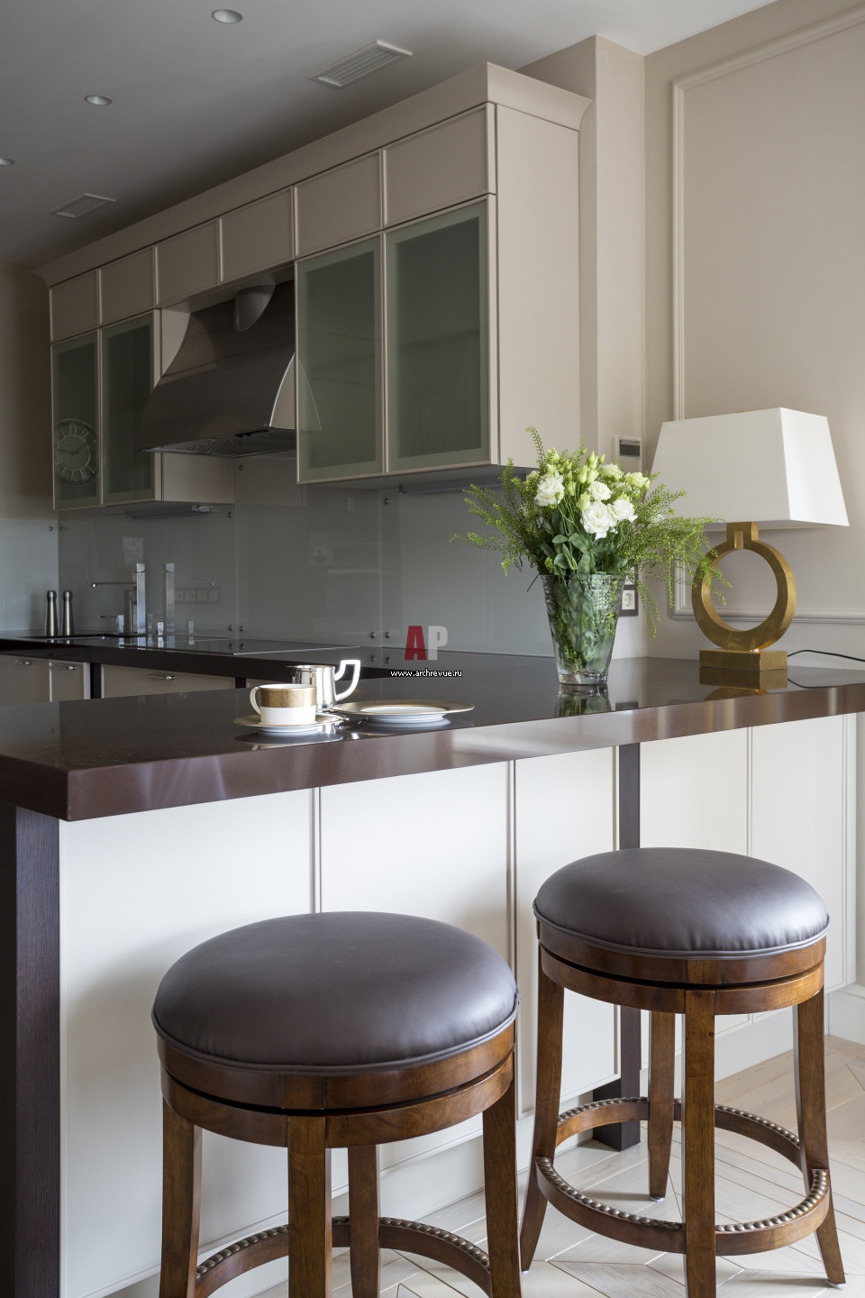 Интерьер кухни. Кухонный гарнитур, Aster Cucine (модель Avenue). Барные стулья Century Furniture.