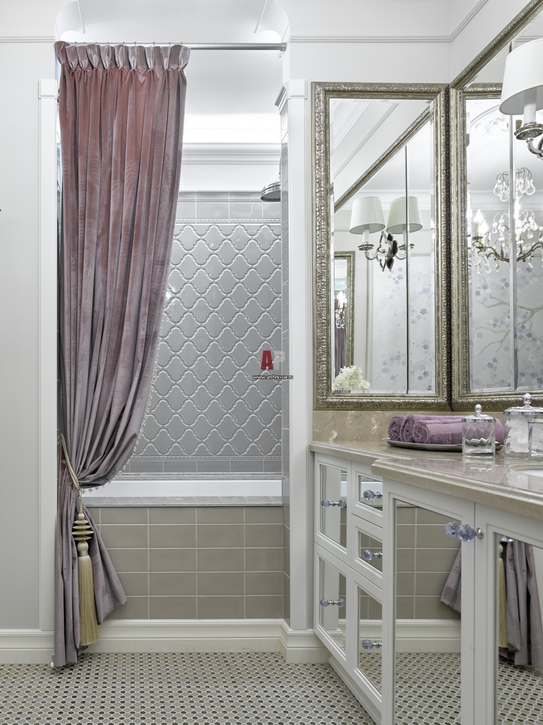 Интерьер хозяйской ванной. Мозаика на полу, Sicis. Плитка, Adex. Сантехника, Villeroy & Boch.