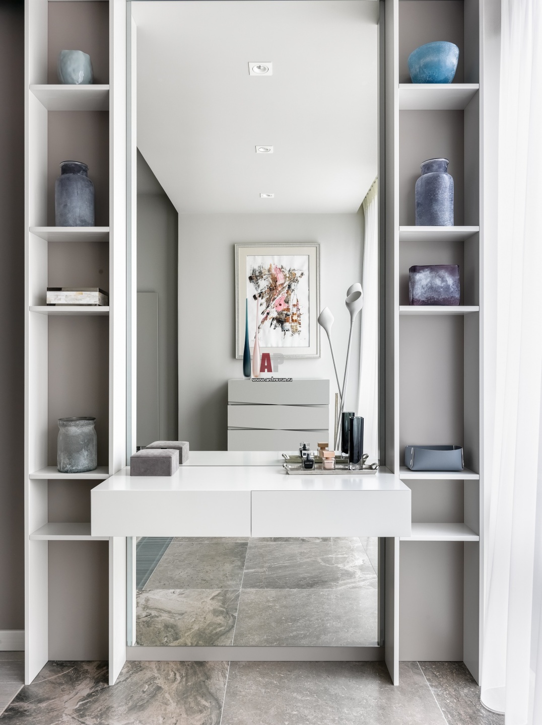 Семейная квартира с тремя спальнями. Зона будуара в хозяйской спальне.