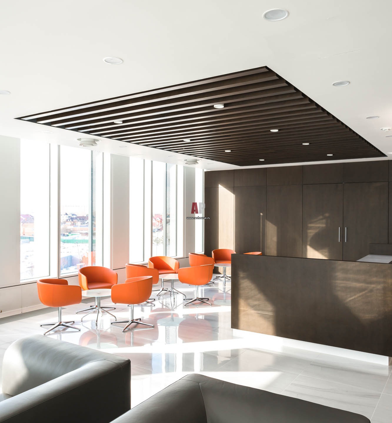 Интерьер офиса «Ростелеком» в офисном парке Comcity. Приемная в зоне руководства.