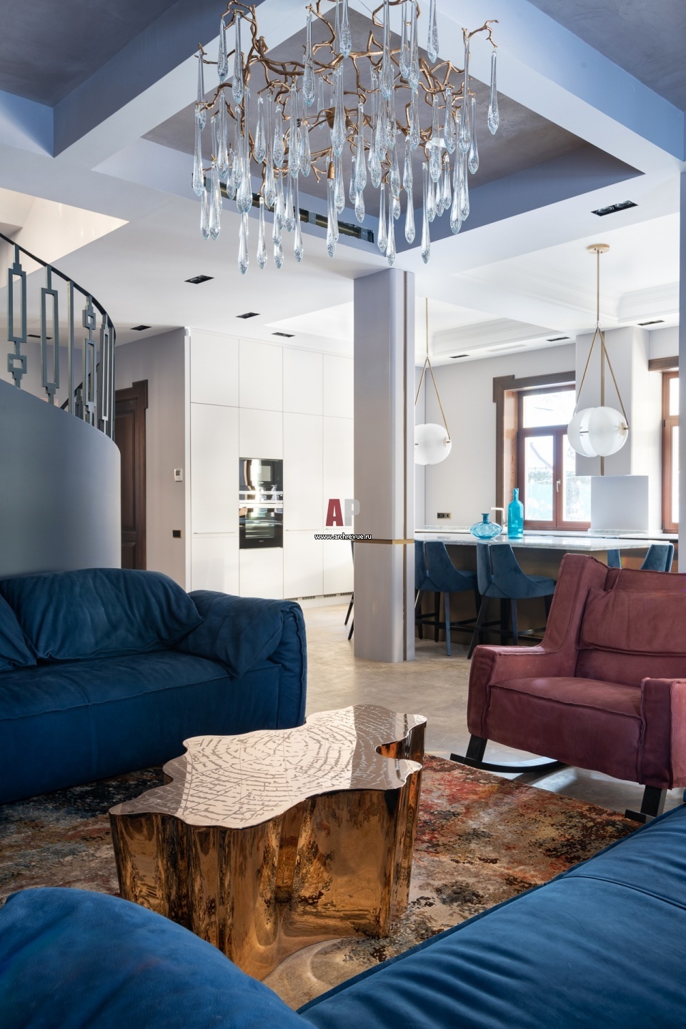 Нормандский дом в Подмосковье. Интерьер гостиной с морской тематикой.