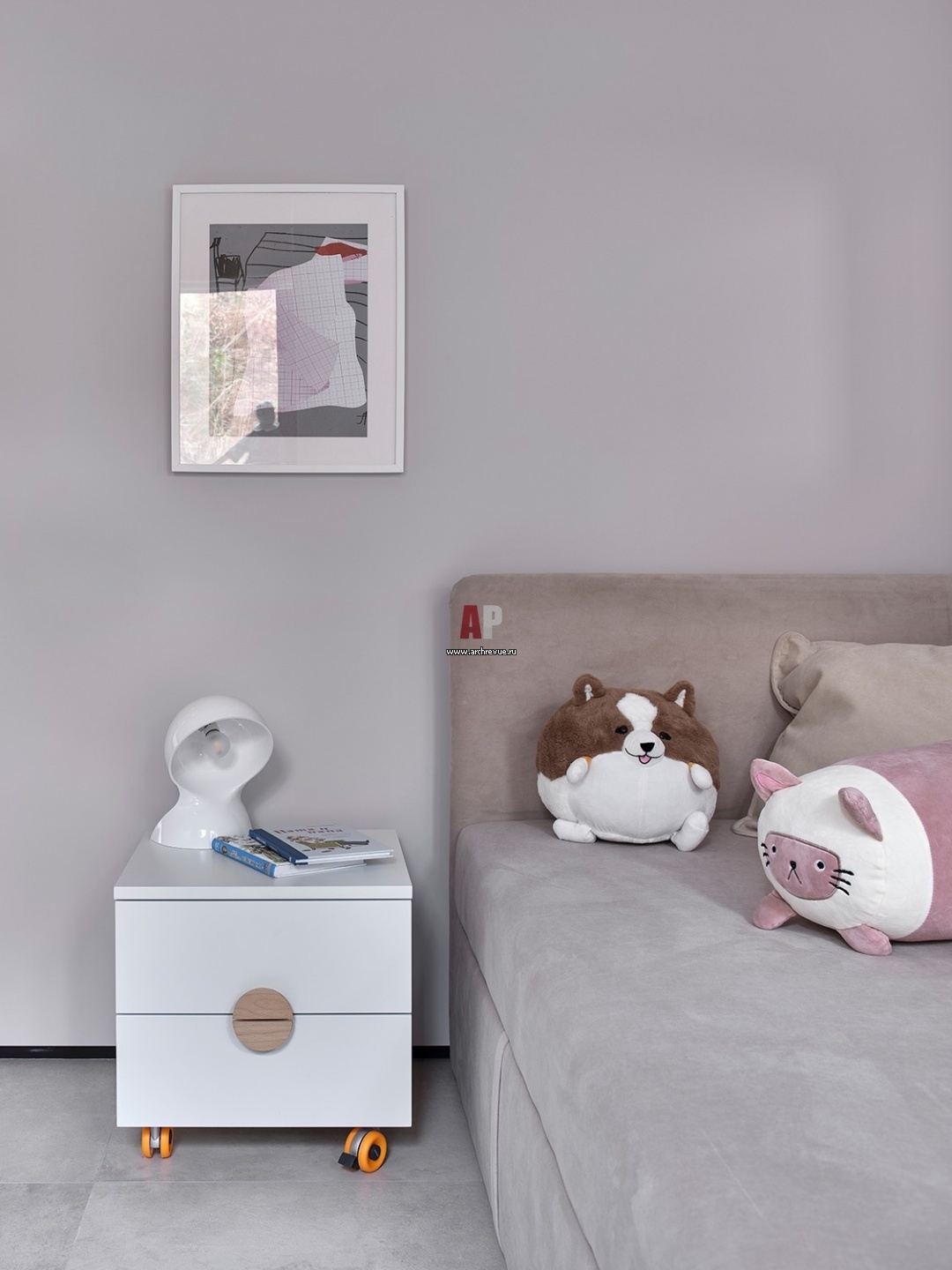 Спальня дочери. Стол, тумбочка, зеркало и шкаф изготовлены на заказ.