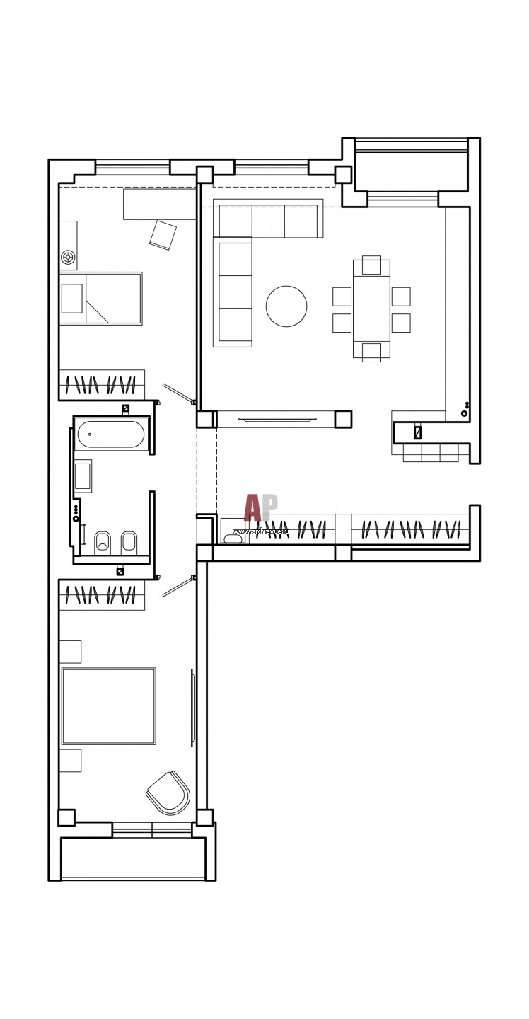 Функциональный интерьер квартиры в стиле минимализм на Старом Арбате
