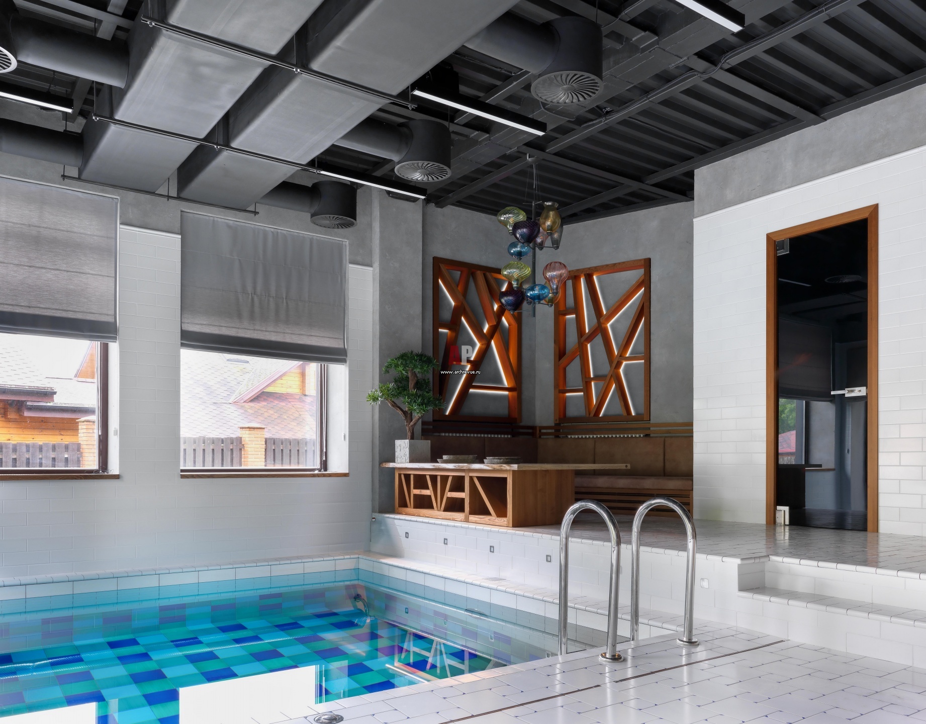 Интерьер двухэтажного дома в Борках со сложной архитектурой