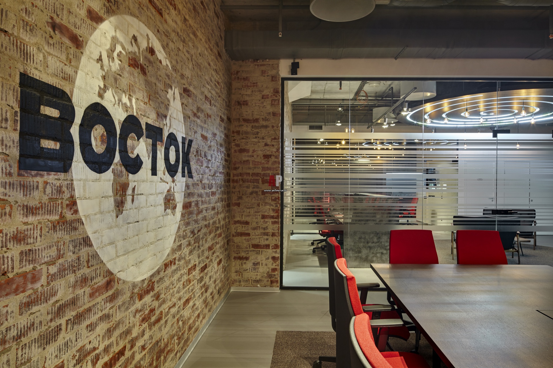 Для создания эстетики лофта использовали обычный современный кирпич. Затем стену небрежно шпатлевали и очищали грубой металлической щеткой, в итоге получилась красивая состаренная кладка. Лицевой керамический кирпич Terca, Wienerberger.