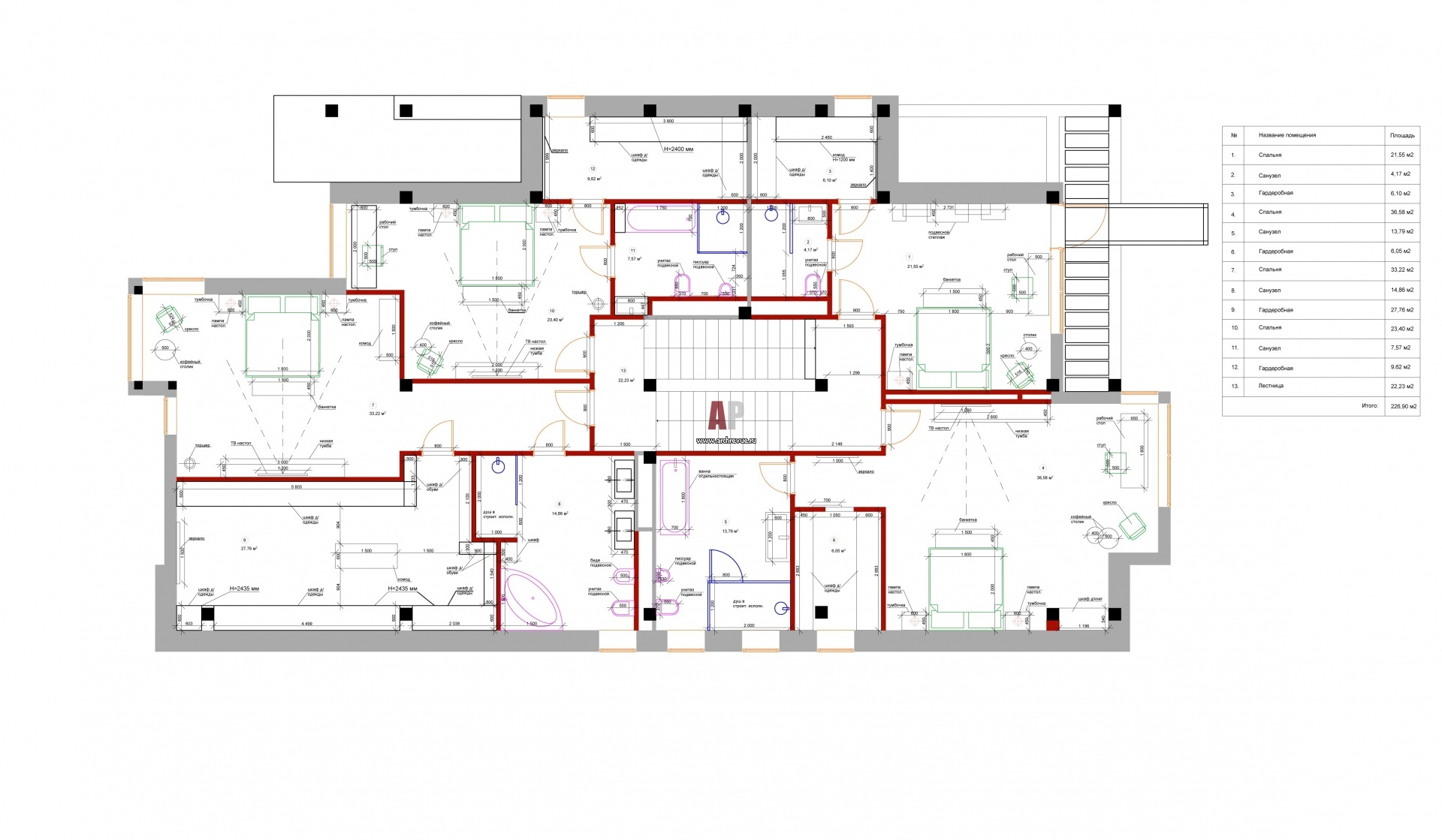 Планировка третьего этажа 4-х этажного дома в современном стиле. Общая площадь – 650 кв. м.
