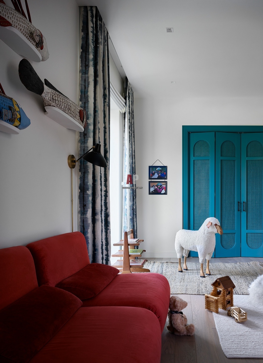 Детская игровая. Зона хранения, МДФ, ротанг, эмаль цвет сине-зеленый (Карибского моря), на заказ – изготовление Bionica Wood.