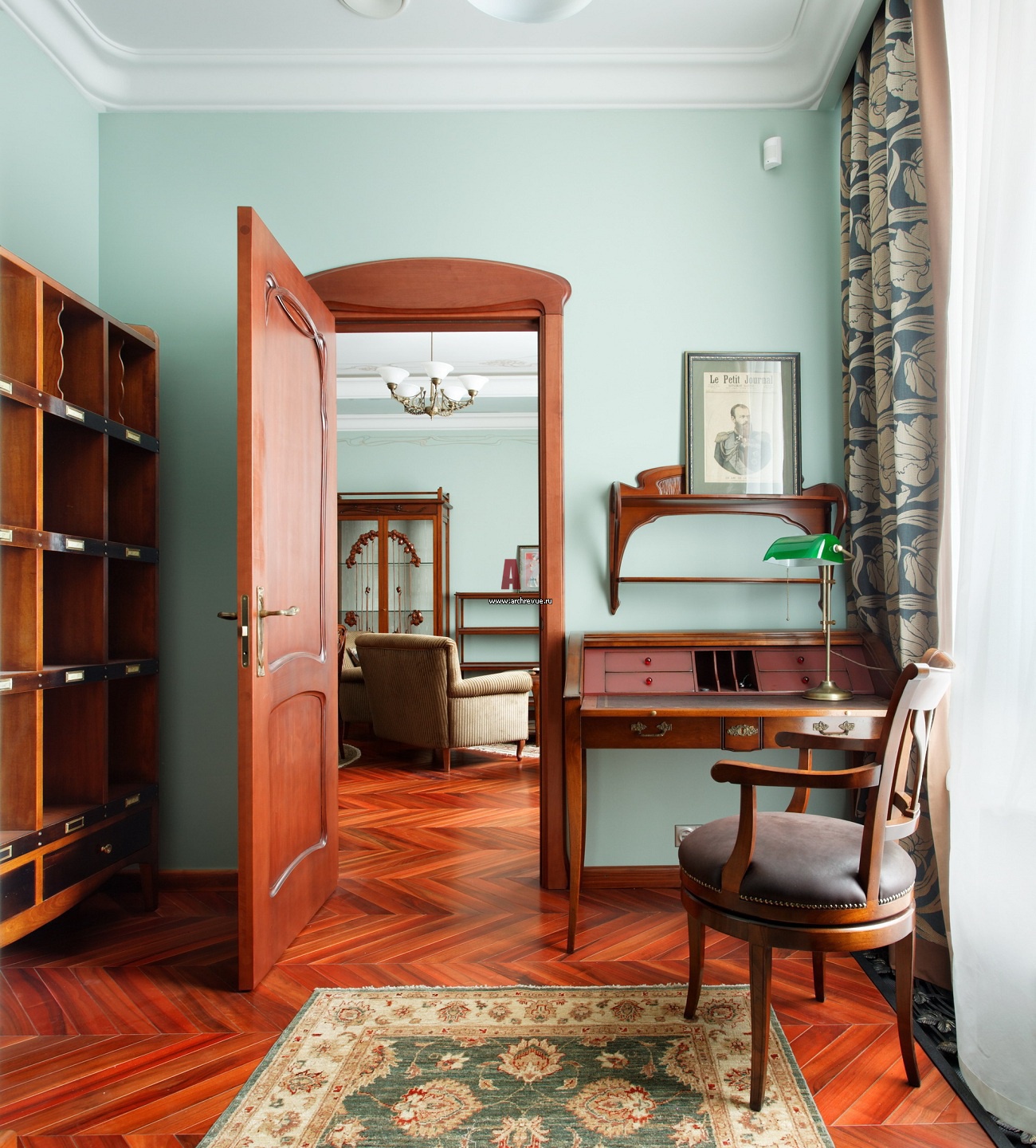 Фото интерьера кабинета небольшой квартиры в стиле модерн
