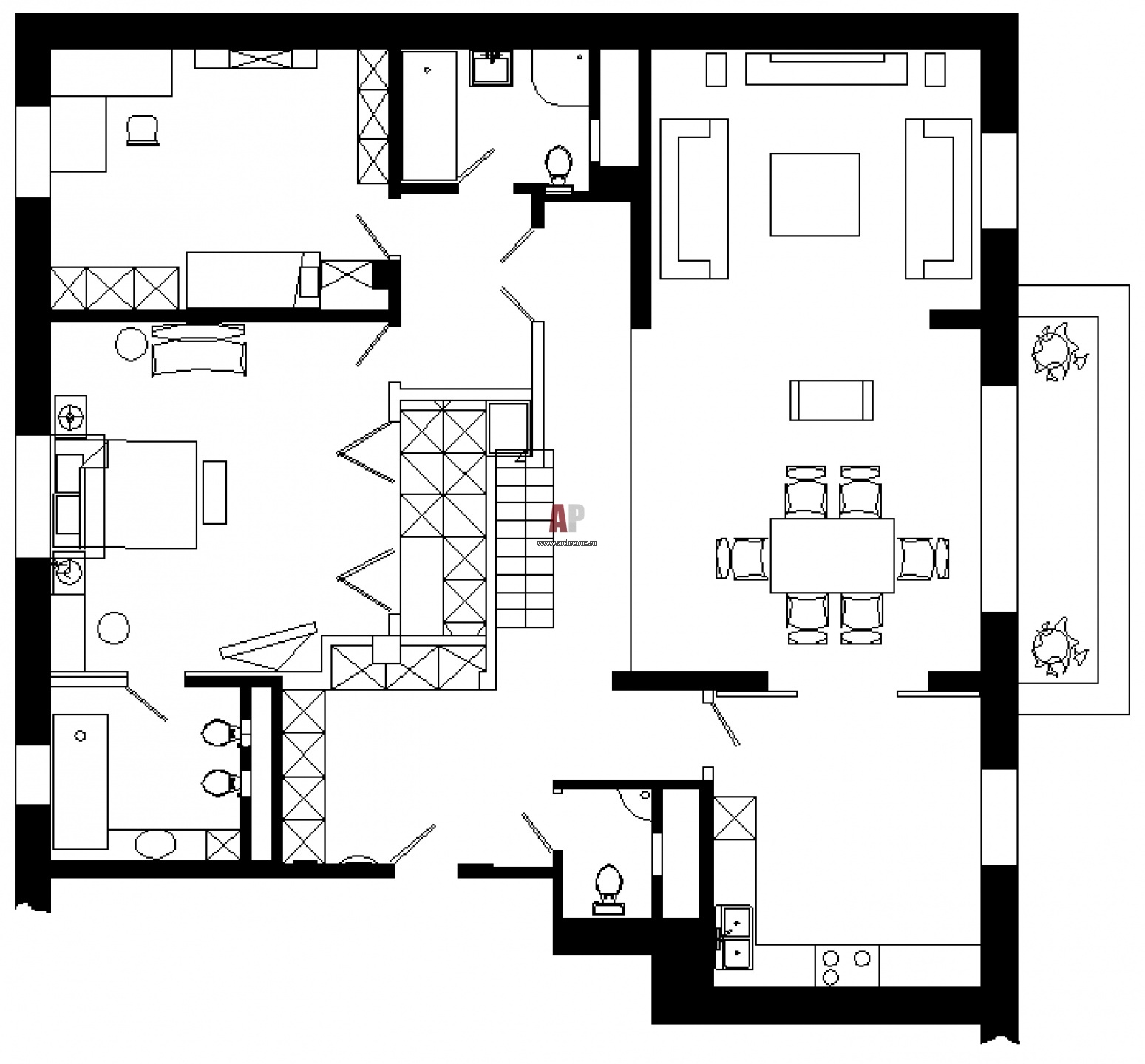 Планировка двухэтажной квартиры на Арбате. Первый этаж.