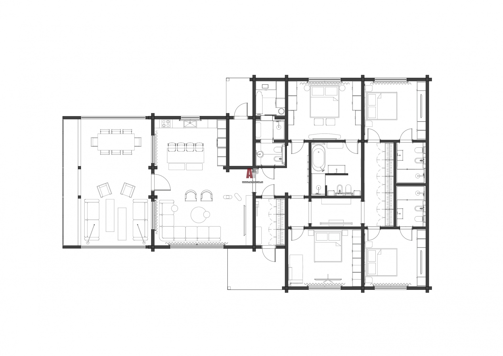 Планировка одноэтажного шале, 260 кв. м.