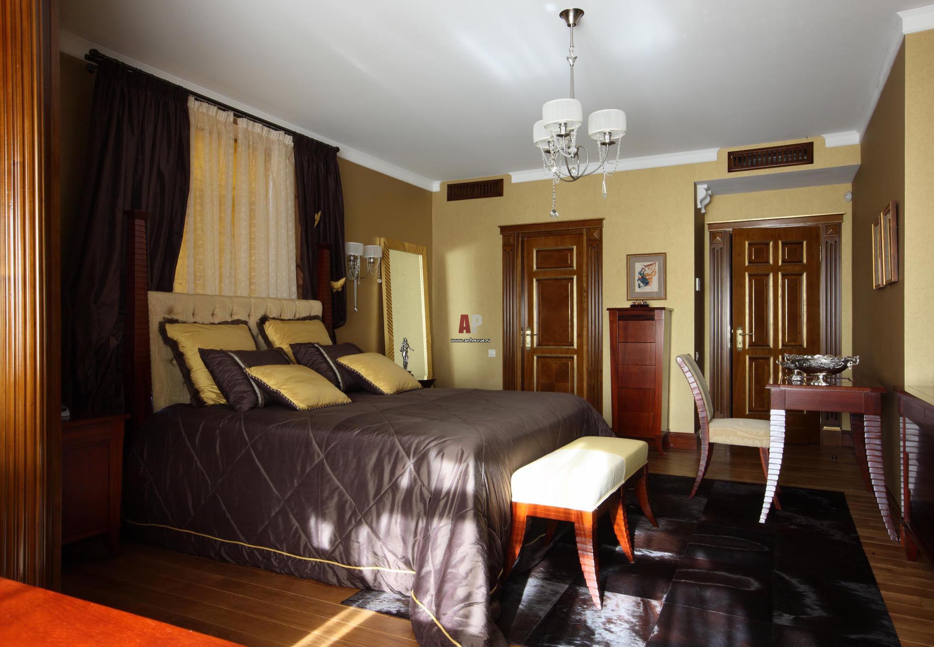 Одна из спален в доме выполнена в стиле ар-деко.