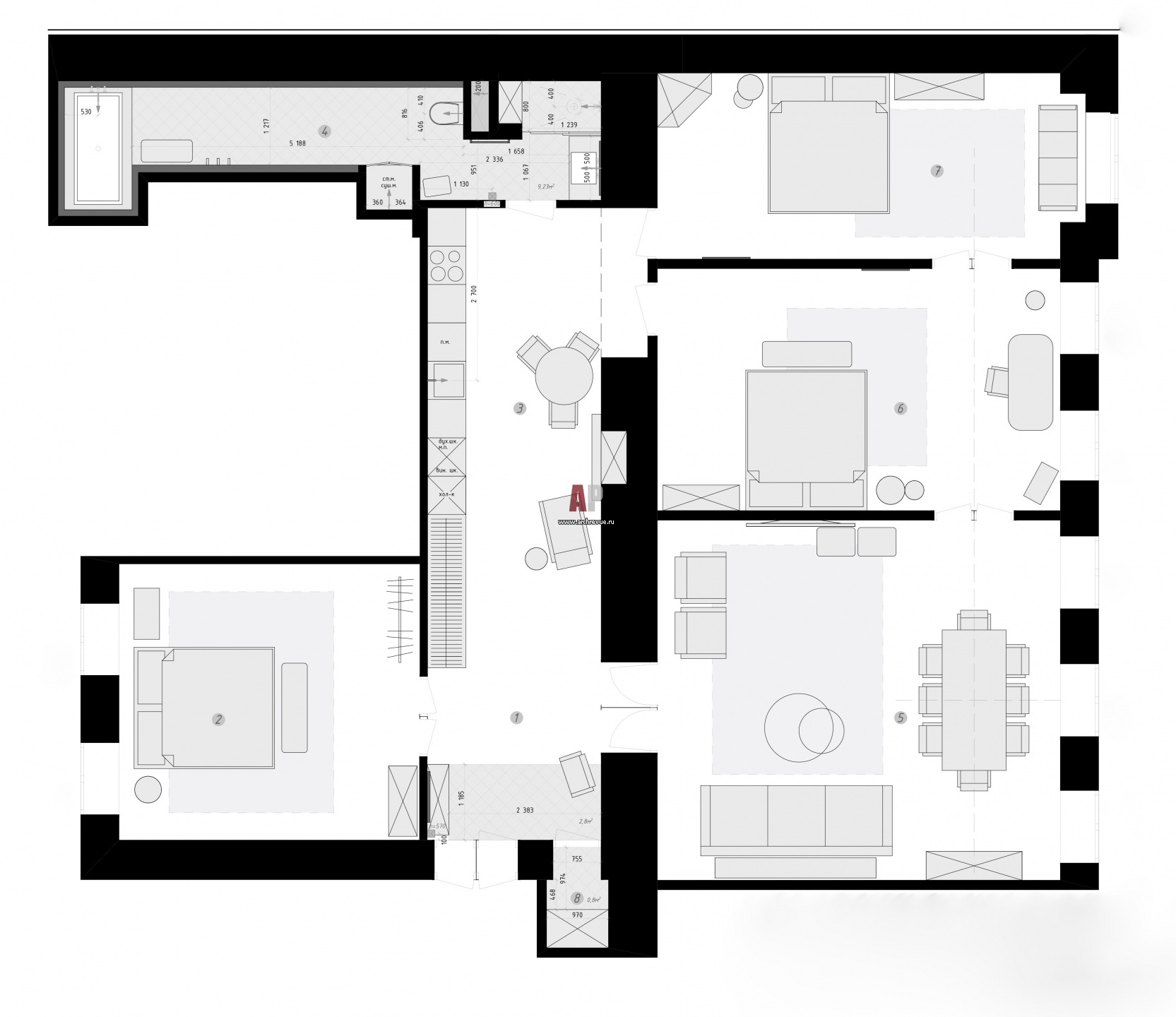План 4-х комнатной квартиры в историческом доме Санкт-Петербурга.