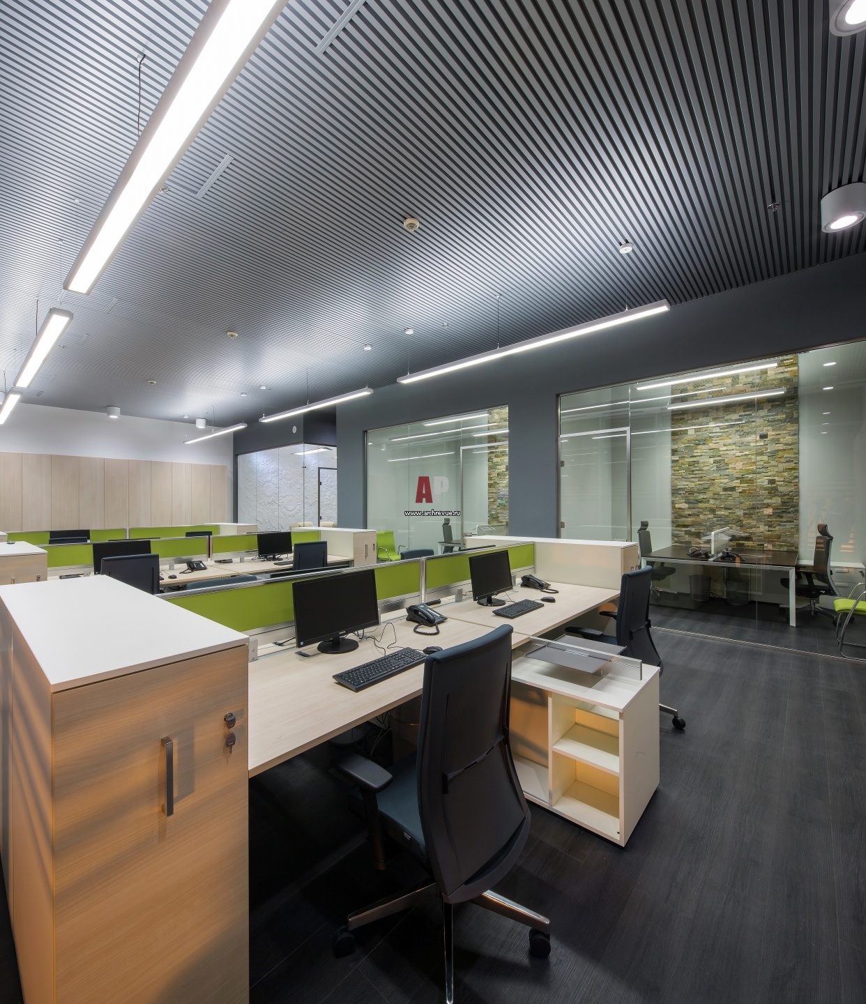 Всего в офисе трудится 21 сотрудник, зона руководства отделена от open space рядовых сотрудников стеклянными перегородками.