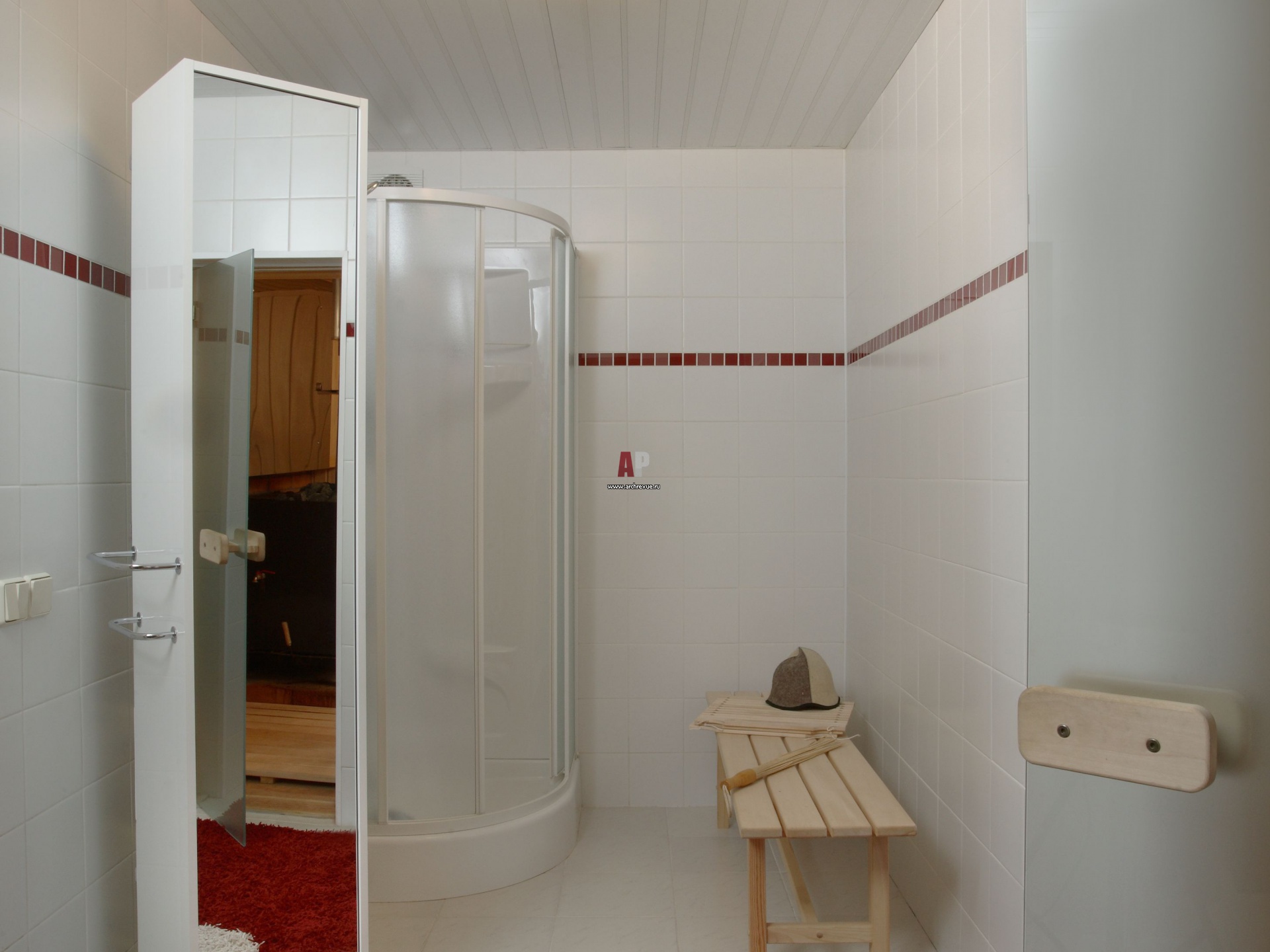 Фото интерьера душевой банного комплекса загородного деревянного дома