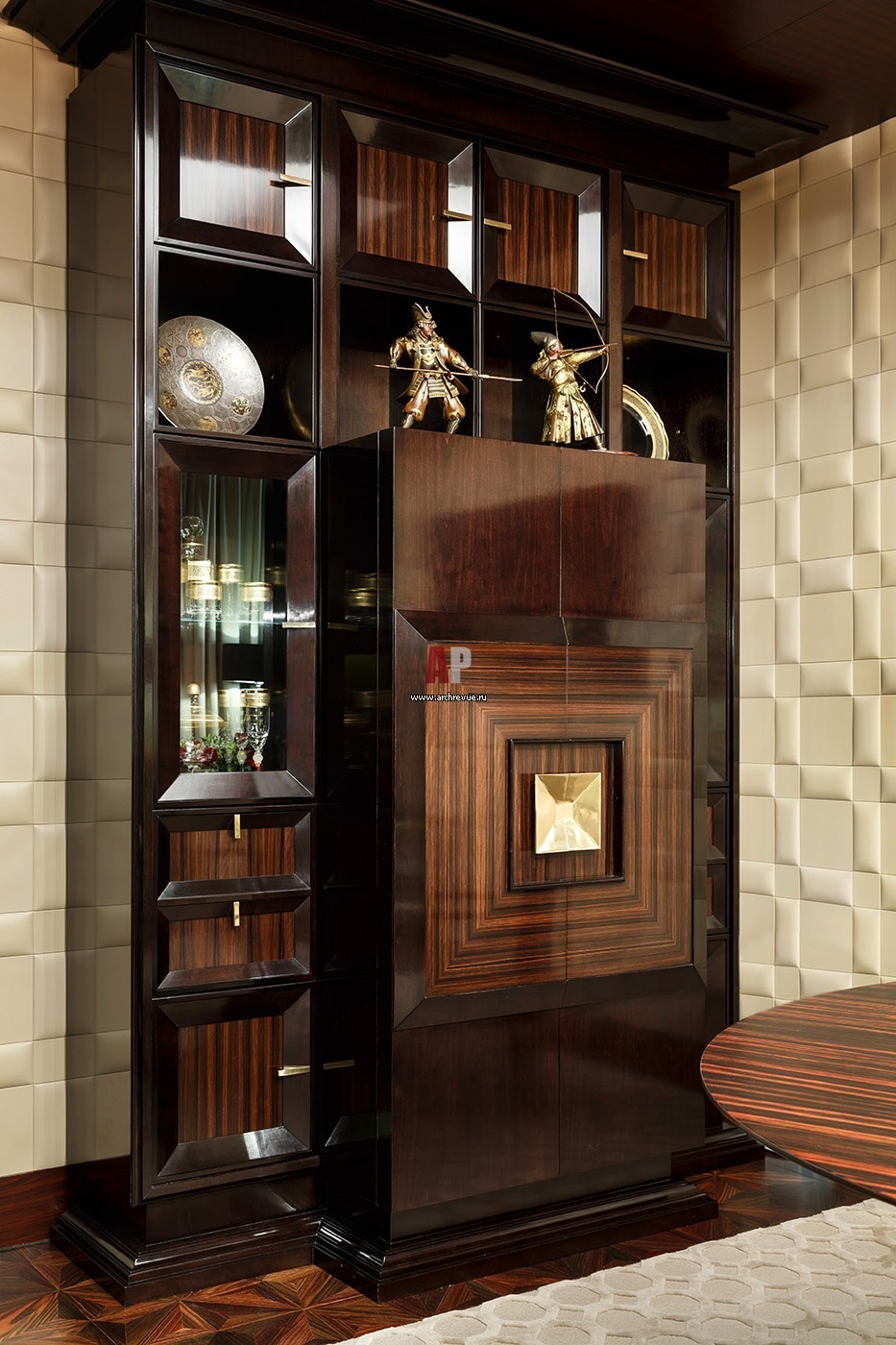 Яркий акцент столовой, подчеркивающий респектабельную стилистку интерьера – винный шкаф Annibale Colombo.