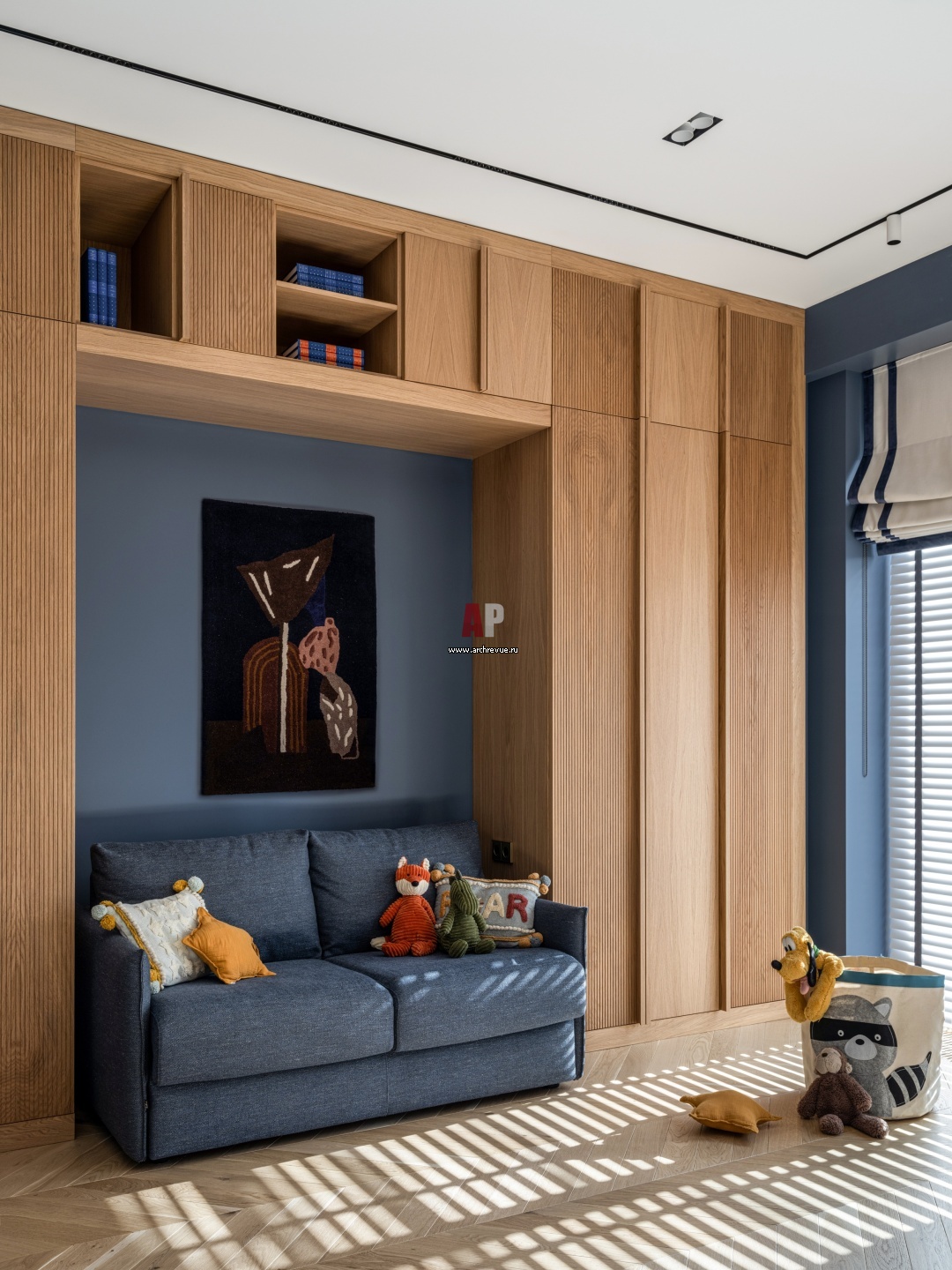 Квартира для молодой семьи с тремя сыновьями. Фрагмент детской. Шкафы, на заказ – изготовление «Ассоциация русских мастеров»
