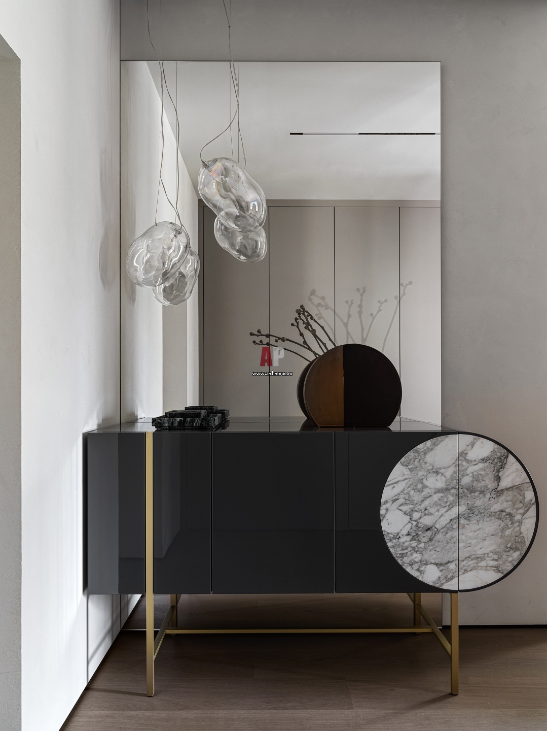Видовая квартира в клубном жилом доме малой этажности. Прихожая. Комод, Baxter. Подвесы над комодом, Cattelan Italia.