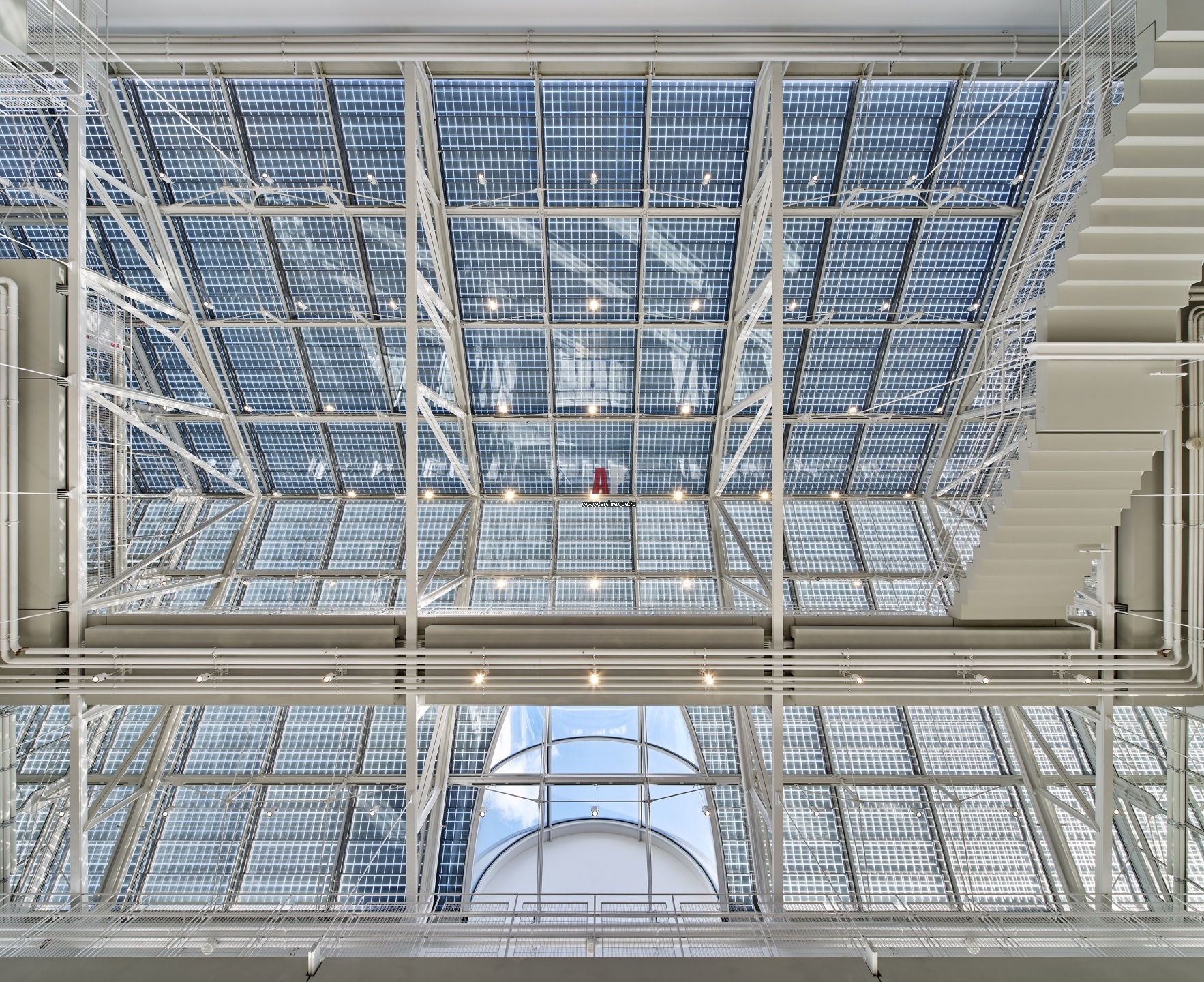 Историческая светопрозрачная кровля воссоздана. Для остекления произведено 4500 кв. м структурных двухкамерных стеклопакетов с закаленным архитектурным стеклом с HST и ответным термоупрочненным триплексом. На кровле смонтированы солнечные батареи, которые обеспечивают 10% от потребляемой комплексом энергии.