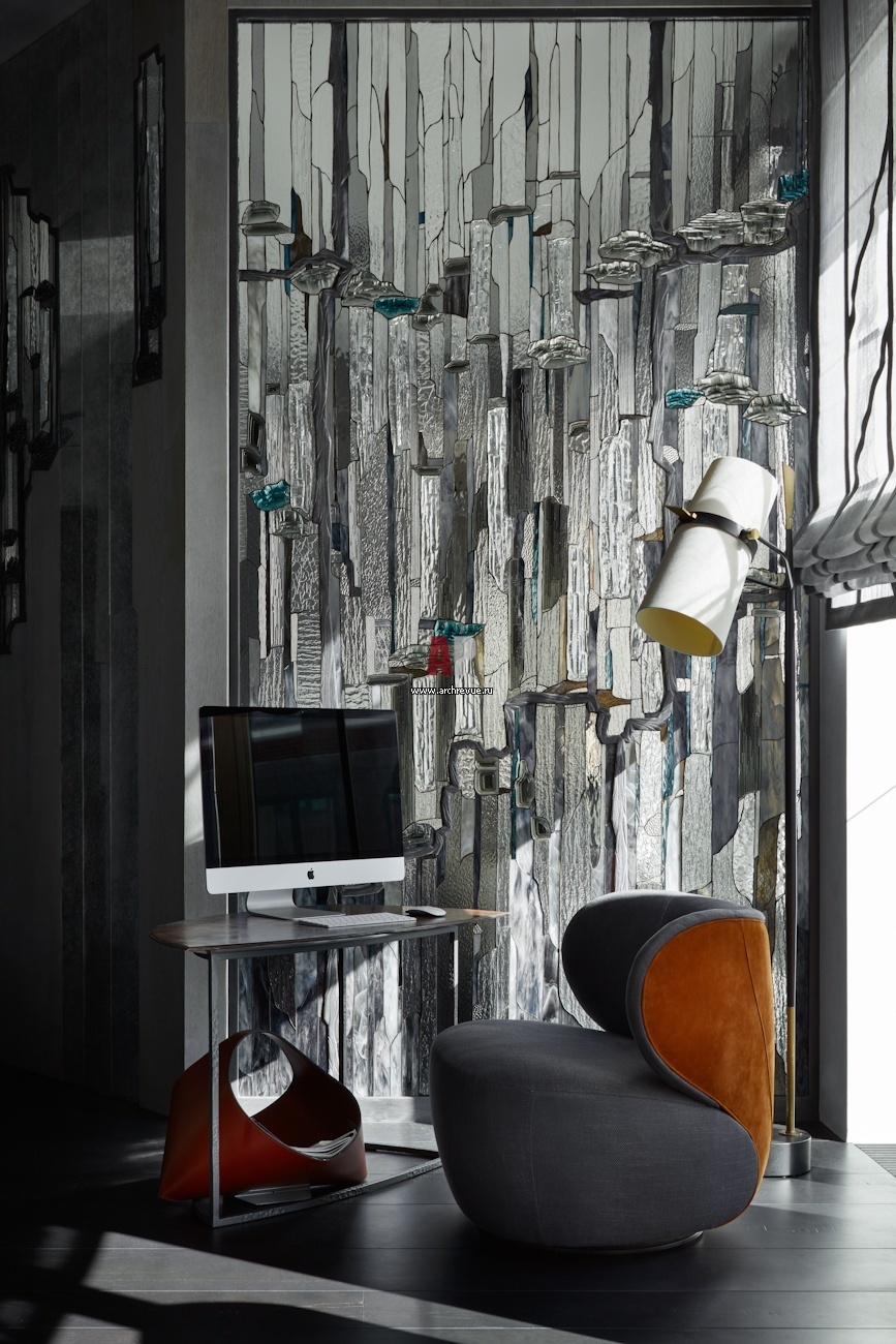 Артистичная квартира для интеллектуала. Интерьер рабочей зоны.