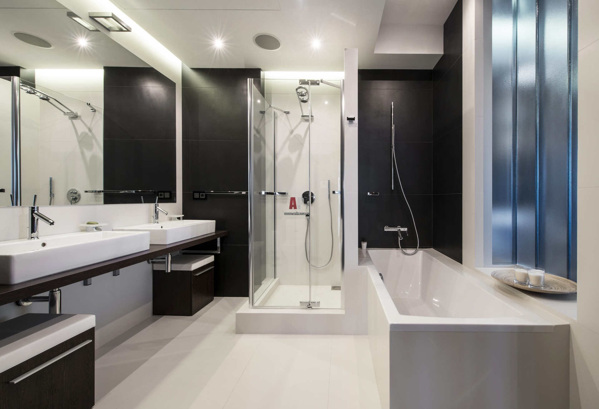 Ванная комната отделена от спальни светопрозрачной перегородкой из немецкого стеклопрофилита Pilkington Profilit, ее цель – создать естественную освещенность во время SPA-процедур. Сантехника Duravit, Laufen, Hueppe, Axor, Hansgrohe, Grohe.