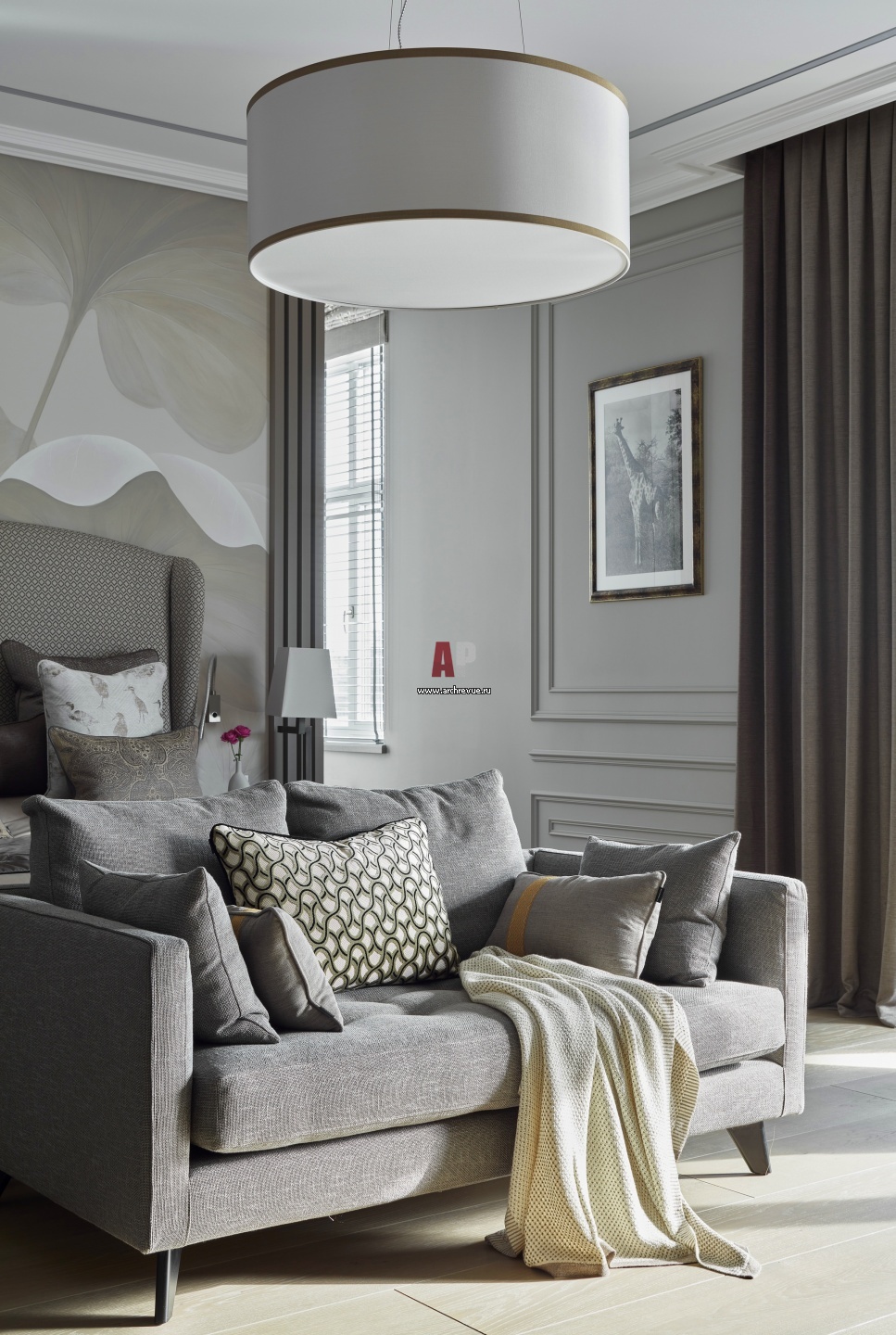 Спальня дочери. Вместо традиционной банкетки в изножье кровати установлен диван Marac – дополнительное место для отдыха, куда можно посадит гостей. Лепной потолочный карниз, высокий 25-ти сантиметровый плинтус, двойные молдинги в рамках в оформлении стен – дань классической стилистике.