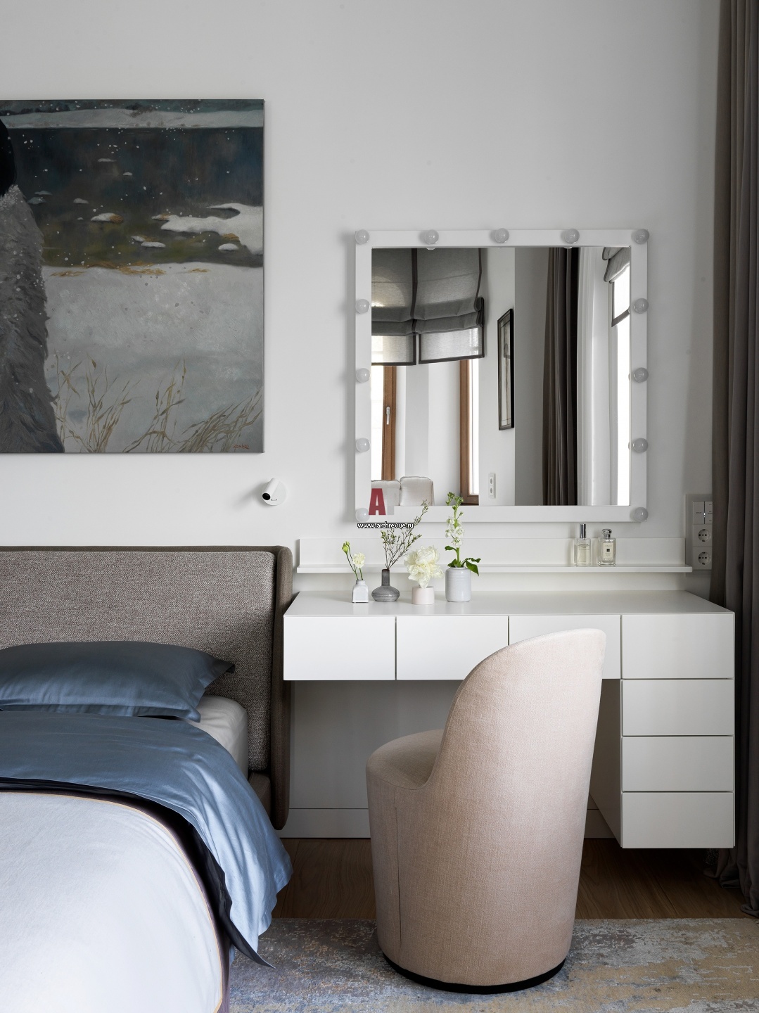 Большая квартира для семьи с двумя детьми. Женская спальня. Туалетный столик сделан на заказ – изготовление, «АФ Ника».