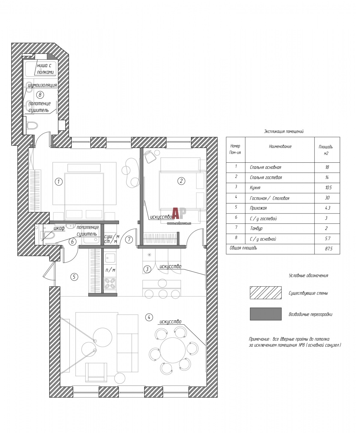 План трехкомнатной квартиры для временных визитов в Москву. Общая площадь – 90 кв. м.