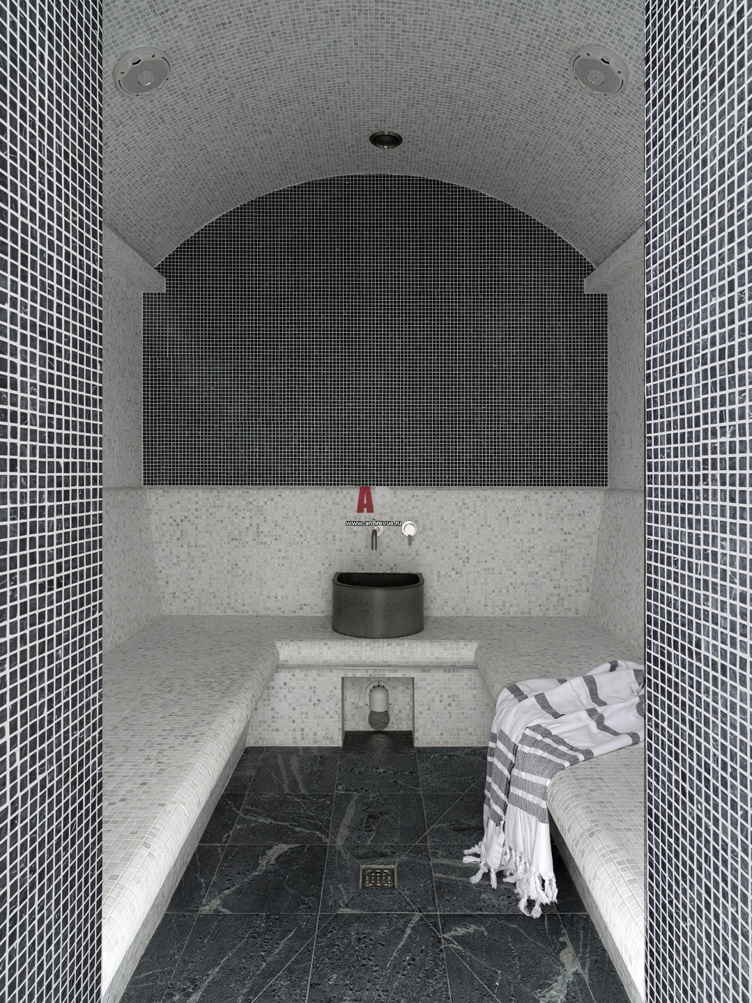 Хама облицован черно-белой мозаикой и выглядит очень сдержанно.