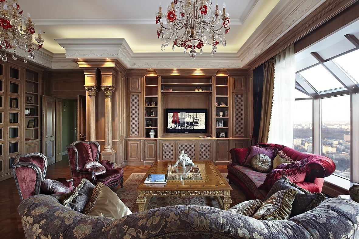 Доставшиеся от строителей окна были заменены на новые, с более тонкими импостами. Благодаря чему удалось увеличить освещенность помещений еще на 20% и еще больше раскрыть интерьеры на перспективу города. Окна снабжены небольшими подоконниками (высотой 15 см) и, в отличие от так называемых французских окон, больше подходят классической стилистике.
