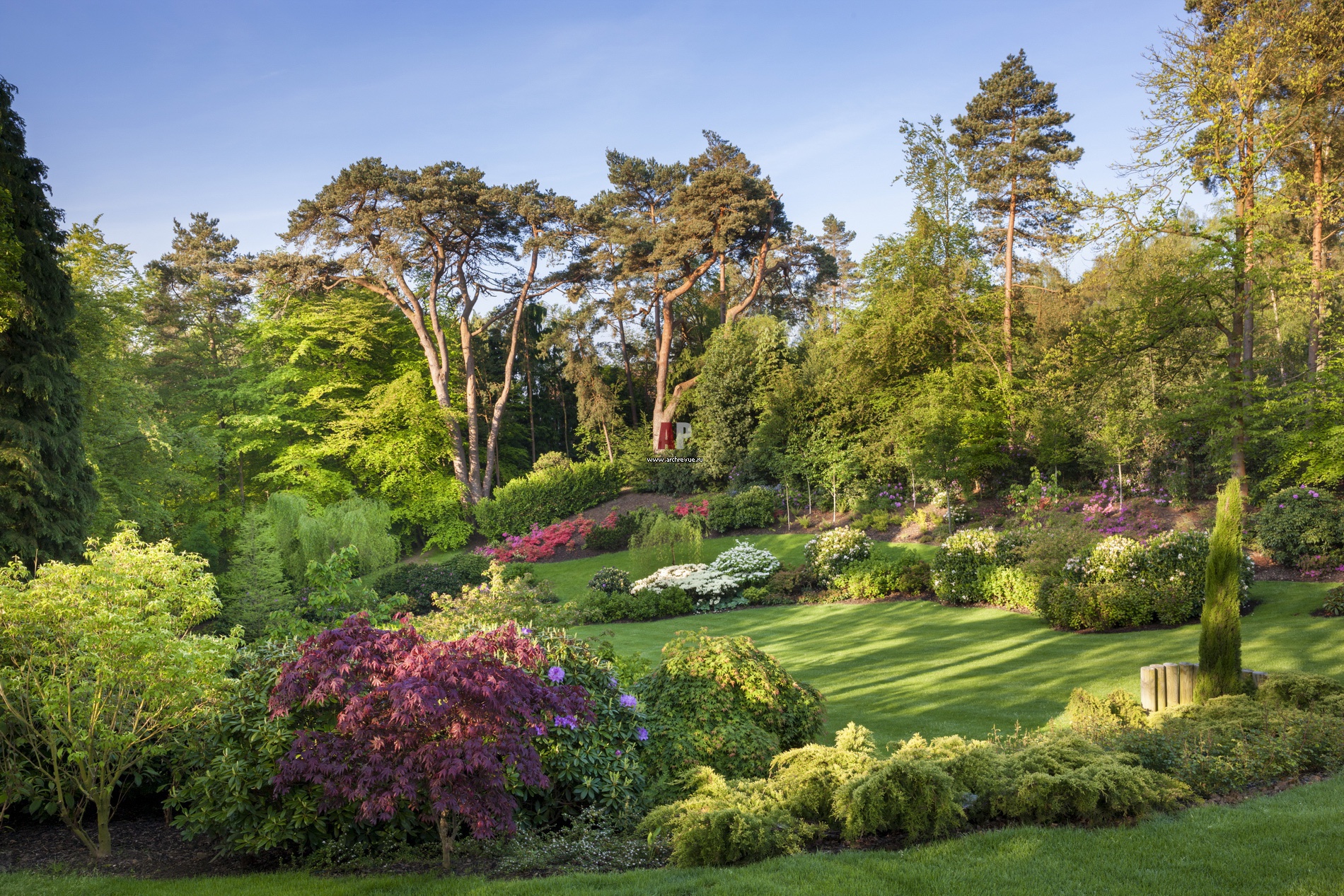 В дополнение к существующим соснам и туям, на участке высажено множество хвойных растений: тисов, можжевельников, кедров, а также вечнозеленых лиственных растений, таких как рододендроны, самшиты, калина давида, калина гибридная «Прагенсе», пиерис японский и лавровишня, благодаря которым и зимой сад наполнен сочной зеленью.