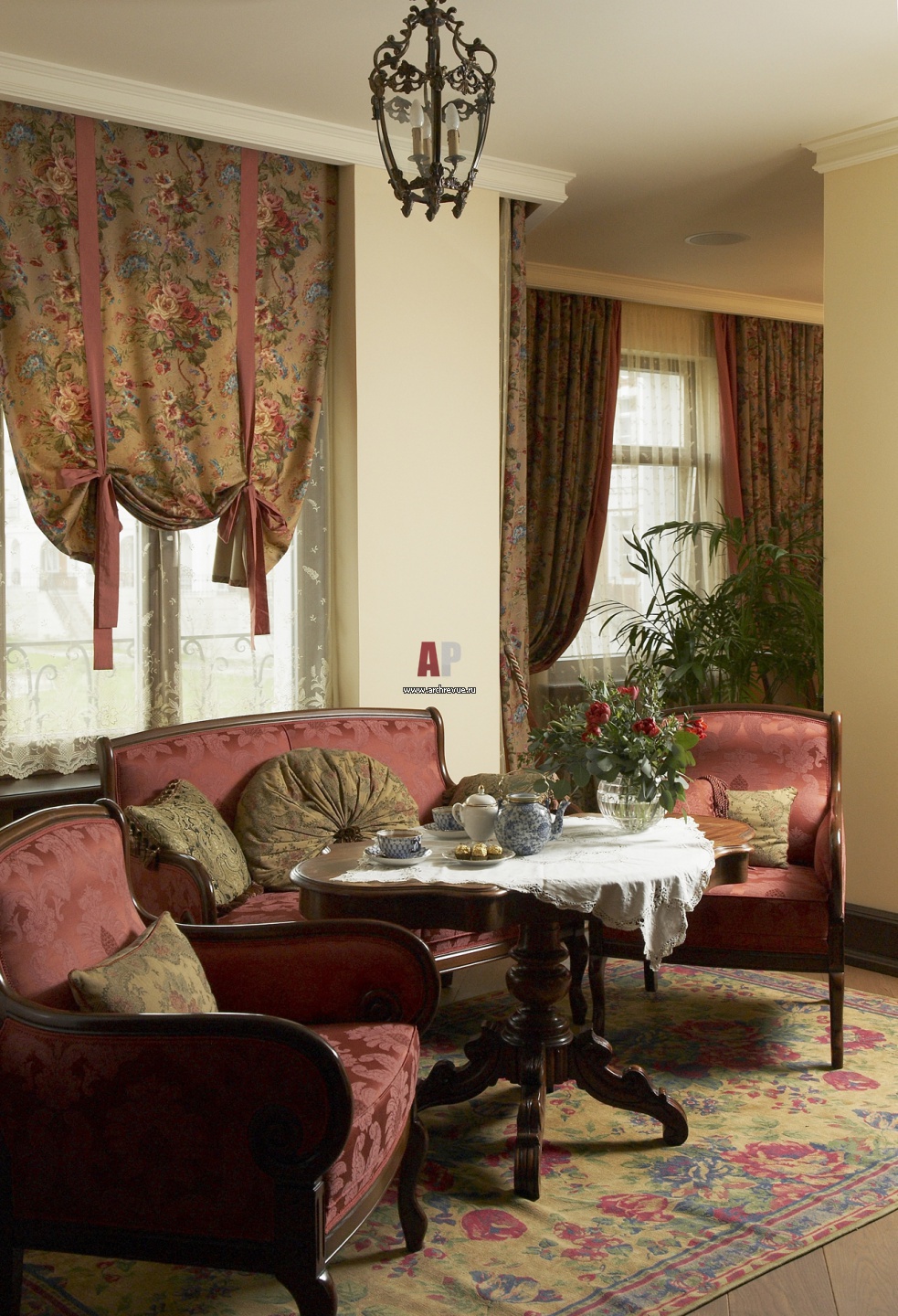 Зона для утренних чаепитий меблирована антикварными предметами.
